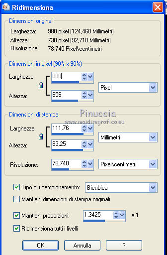 Immagine>Ridimensiona, all'85%, tutti i livelli non selezionato.