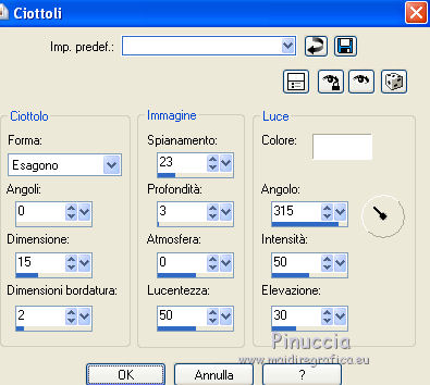 Effetti>Effetti 3D>Smusso a incasso, con i settaggi precedenti.