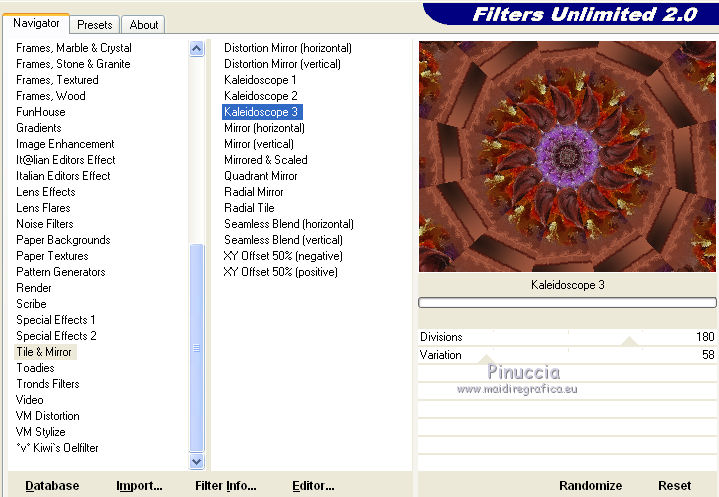 Effetti>Plugins>Filters Unlimited - Tile & Mirror - Kaleidoscope 3.