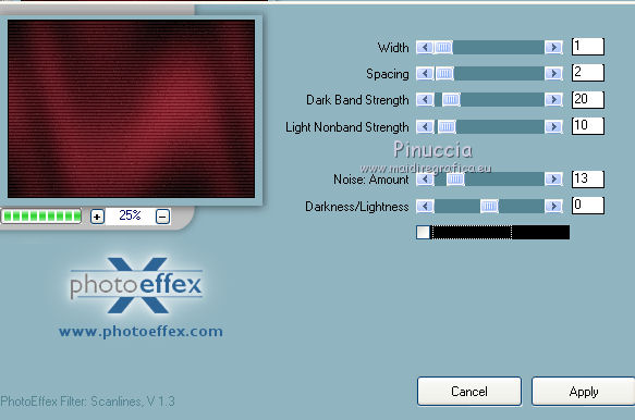 Effetti>Plugins>Photo Effex - Scanlines, con i settaggi precedenti.