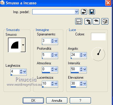 Effetti>Effetti 3D>Smusso a incasso, con i settaggi precedenti.