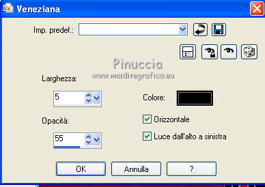 Effetti>Effetti di trama>Veneziana, con i settaggi precedenti.
