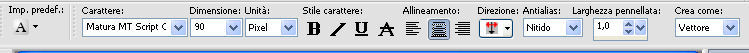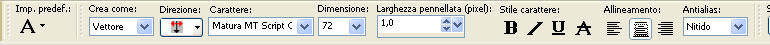 Per questo testo è stato usato il font Matura MT Script con i seguenti settaggi (PSP 9):