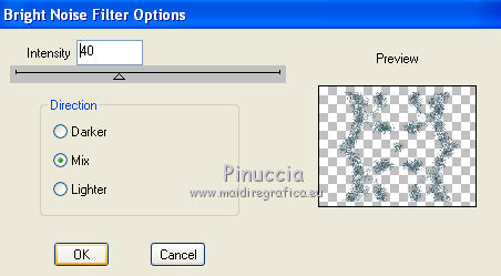 Cambia la modalità di miscelatura in Luce netta e ripeti l'Effetto Bright Noise, cliccando sul puntino di Mix (questo cambierà l'aspetto del disturbo).