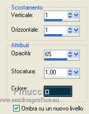 Effetti>Effetti 3D>Sfalsa ombra, con il colore di sfondo, ombra su nuovo livello selezionato.