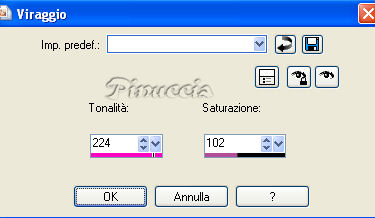 Regola>Tonalità e saturazione>Viraggio, con i settaggi precedenti.