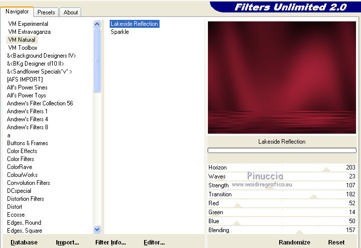 Effetti>Plugins>Filters Unlimited 2.0 - VM Natural - Lakeside Reflection.
