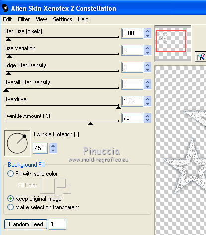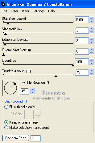 Ripeti l'Effetto Constellation, cambiando soltanto Star Size con 5,00 senza Random Seed.