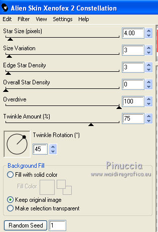 Ripeti l'Effetto Constellation, cambiando soltanto Star Size con 4,00 senza Random Seed.