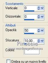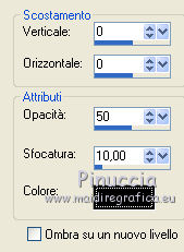 Effetti>Effetti 3D>Sfalsa ombra, con i settaggi precedenti, ma con il colore nero.