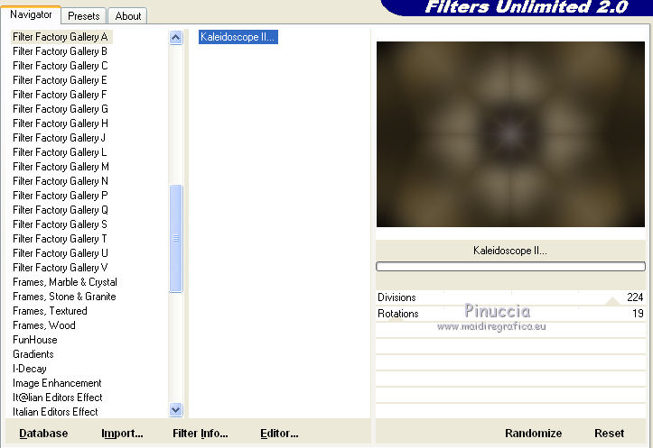 4. Effetti>Plugins>Filters Unlimited 2.0 - Filter Factory Gallery A - Kaleidoscope II.