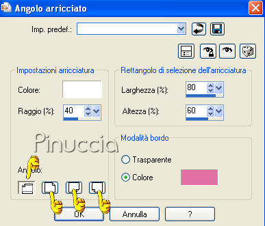 Effetti>Effetti di immagine>Angolo arricciato, con il colore di primo piano.