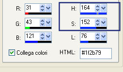 Prendi nota dei valori di Tonalità (H) e Saturazione (S) del tuo colore di primo piano.