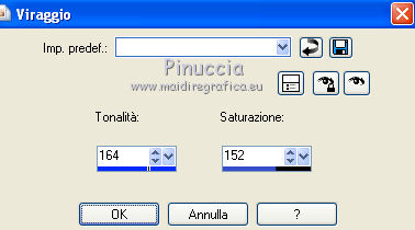 Regola>Tonalità e saturazione>Viraggio e trascrivi i valori annotati nelle rispettive caselle.