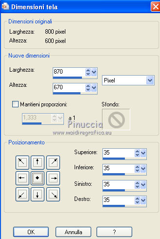 Immagine>Dimensione tela.