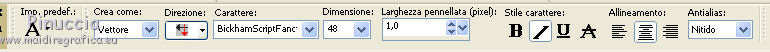 Per questo testo è stato usato il font BickhamScriptFancy2 con i seguenti settaggi.