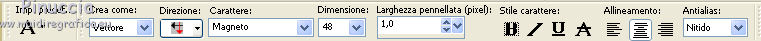 Per questo testo è stato usato il font Magneto con i seguenti settaggi.