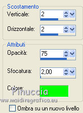 Effetti>Effetti 3D>Sfalsa ombra, con il secondo colore scelto; il mio #00ff00.
