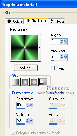 Passa il colore di primo piano a Gradiente e seleziona il gradiente bhw_greeny (o un gradiente a tua scelta), con i seguenti settaggi: