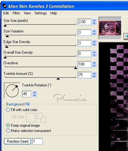 Ripeti l'Effetto Constellation cambiando soltanto Star size con 3,0, senza cliccare su Random Seed.