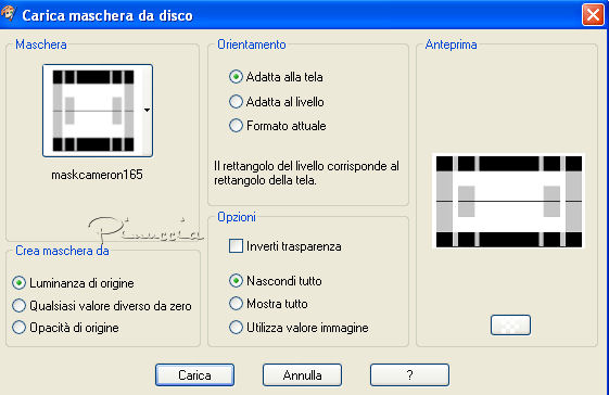 Seleziona la maschera maskcameron_polaris, con i seguenti settaggi.