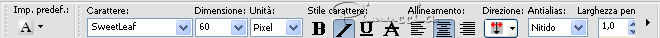 per il testo fornito, creato con PSP 9, la dimensione è stata di 48 pixels