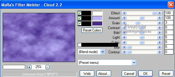 Effetti>Plugins>Mura's Meister - Cloud, con i settaggi precedenti.