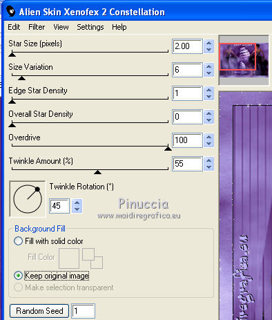Effetti>Plugins>Alien Skin Xenofex - Constellation, riportando Star Size a 2,00.