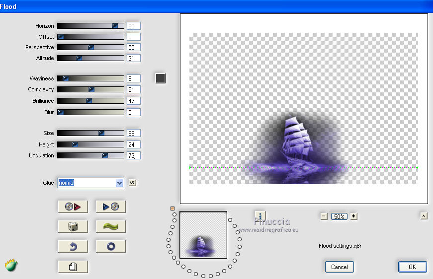 ricorda che questo filtro lavora con i lavori impostati nella paletta dei materiali, ma tiene in memoria il primo settaggio dall'apertura del programma.
