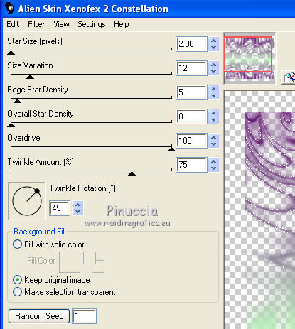 Ripeti l'Effetto Constellation con gli stessi settaggi, ma cliccando una volta su Random Seed.