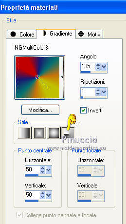 Passa il colore di primo piano a Gradiente, e seleziona il gradiente NGMultiColor2 con i seguenti settaggi.
