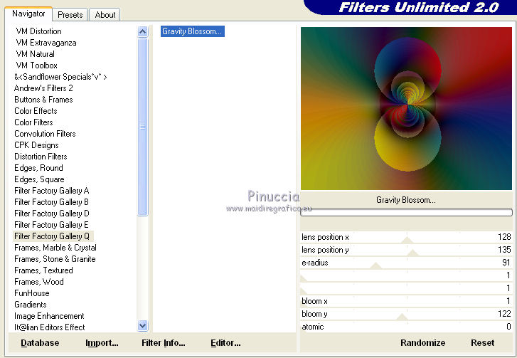 Effetti>Plugins>Filters Unlimited 2.0 - Filter Factory Gallery Q - Gravity Blossom: