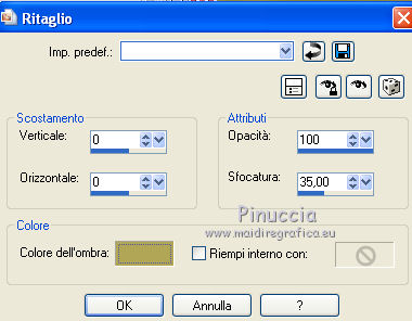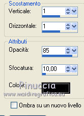 Effetti>Effetti 3D>Sfalsa ombra, con i settaggi precedenti, ma con il colore di sfondo.