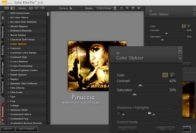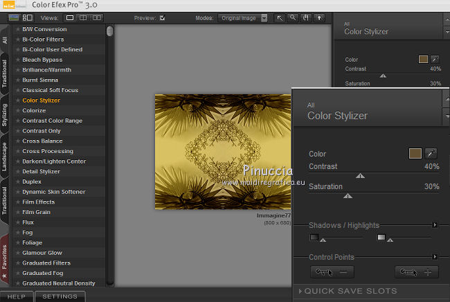 2. Effetti>Plugins>Nik Software - Color Efex Pro - Color Stylizer, con il colore standard #634f31.