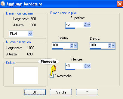 5. Immagine>Aggiungi bordatura, simmetriche non selezionato, con il colore bianco.