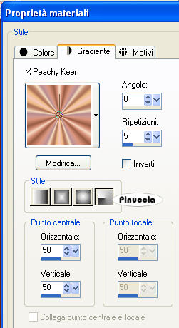 Passa il colore di primo piano a Gradiente e seleziona il gradiente X Peachy Keen con i seguenti settaggi.