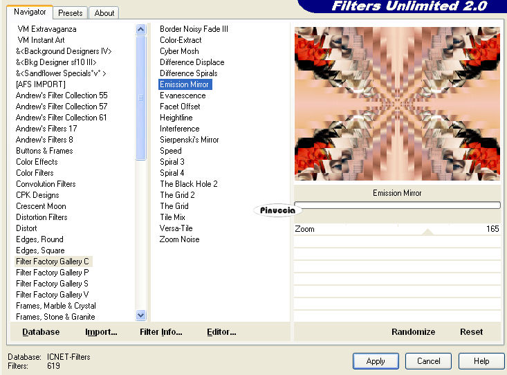 Effetti>Plugins>Filters Unlimited - Factory Gallery C - Emission Mirror.