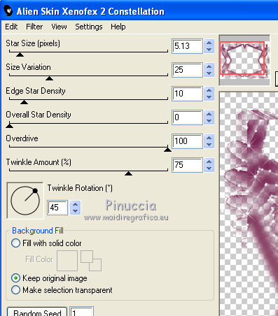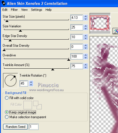 Ripeti l'Effetto Constellation, cambiando soltanto Star Size con 5,13, senza cliccare su Random Seed.
