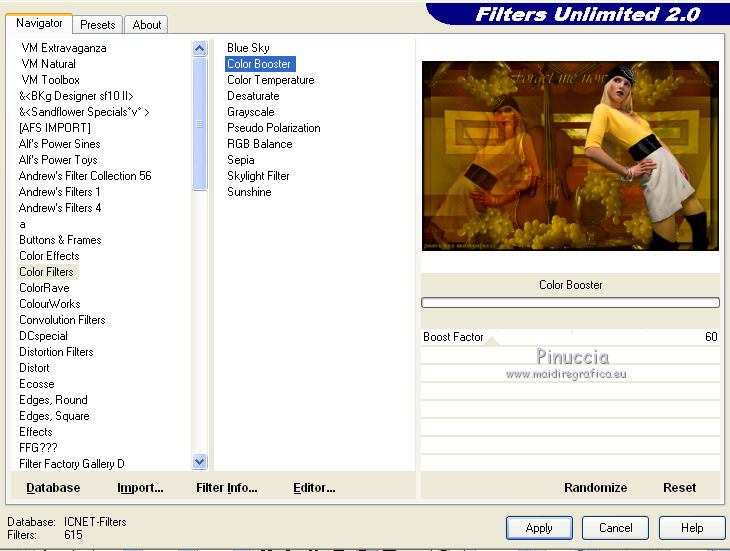 Effetti>Plugins>Filters Unlimited 2.0 - Color Filters - Color Booster.