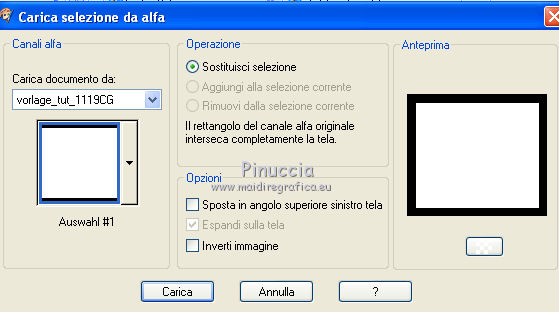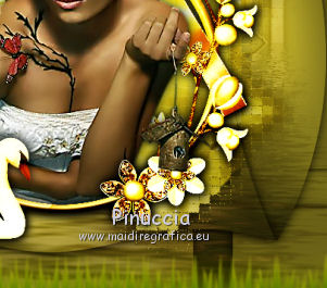 e seleziona la piccola casetta per gli uccelli, nella mano della donna.![]() Modifica>Copia. Selezione>Deseleziona. Modifica>Incolla come nuovo livello. Posiziona la gabbietta nella stessa posizione dell'originale.Livelli>Disponi>Porta in alto. Effetti>Effetti 3D>Sfalsa ombra, con i settaggi precedenti. ![]() Attiva nuovamente il livello del duplicato del cluster. Apri il tube lapin6 by Candice.B e vai a Modifica>Copia. Torna al tuo lavoro e vai a Modifica>Incolla come nuovo livello. Immagine>Ridimensiona, al 65%, tutti i livelli non selezionato. Spostalo in basso a destra.con i miei colori di primo piano e sfondo. ![]() Effetti>Effetti 3D>Sfalsa ombra, con i settaggi precedenti. Effetti>Plugins>Xero - Improver, con i settaggi precedenti. 5. Apri il tube del piccolo uccello - "vogel klein" - e vai a Modifica>copia. Torna al tuo lavoro e vai a Modifica>Incolla come nuovo livello. Livelli>Disponi>Porta in alto. Spostalo accanto alla casetta per uccelli.![]() Apri "bow_cg.psd" e vai a Modifica>copia. Torna al tuo lavoro e vai a Modifica>Incolla come nuovo livello. Se necessario, colorizza. Effetti>Effetti 3D>Sfalsa ombra, con i settaggi precedenti. Spostalo in alto a sinistra.Apri "oesen_psd" e vai a Modifica>copia. Torna al tuo lavoro e vai a Modifica>Incolla come nuovo livello. Spostalo a sinistra.Se necessario, colorizza. Effetti>Effetti 3D>Sfalsa ombra, con i settaggi precedenti. Livelli>Nuovo livello raster. Selezione>Carica/Salva selezione>Carica selezione da canale alpha. Apri il menu, seleziona e carica Auswahl#2. ![]() Riempi con il colore di sfondo.Effetti>Plugins>Graphics Plus - Cross Shadow, con i settaggi precedenti. Selezione>Deseleziona. Effetti>Effetti 3D>Sfalsa ombra, con i settaggi precedenti. Scrivi un testo o usa il file di testo fornito con il materiale. Aggiungi il tuo nome e/o il tuo watermark su un nuovo livello. Livelli>Unisci>Unisci tutto e salva in formato jpg. ![]() Se hai problemi o dubbi, o trovi un link non funzionante, o anche soltanto per un saluto, scrivimi. 9 Aprile 2011 |