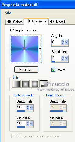 Imposta il colore su Gradiente e seleziona il gradiente X Singing the blues con i seguenti settaggi.