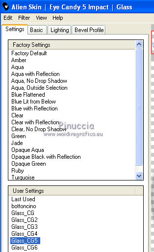 Effetti>Plugins>Alien Skin Eye Candy 5 Impact - Glass,