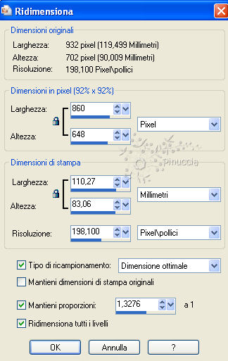 Immagine>Ridimensiona, a 860 pixels di larghezza, tutti i livelli selezionato.