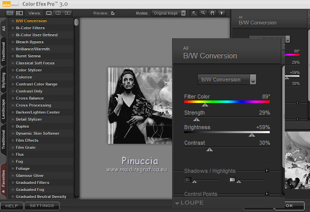 Effetti>Plugins>Nik Software - Color Efex Pro - BW Conversion, con i seguenti settaggi: