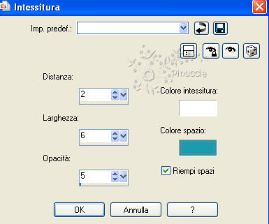 colore intessitura bianco; colore spazio con un colore scelto dall'immagine: il mio #1c9bae.