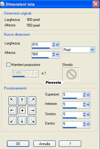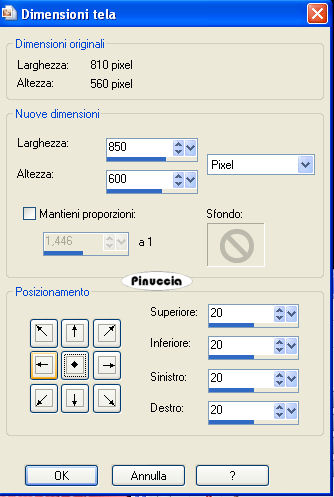 Immagine>Dimensione tela.