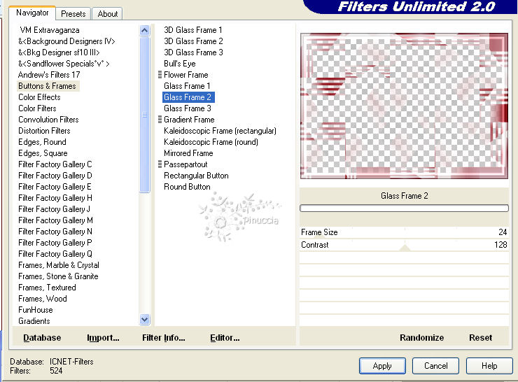 Effetti>Plugins>Filters Unlimited 2.0 - Buttons & Frames - Glass Frame 2.