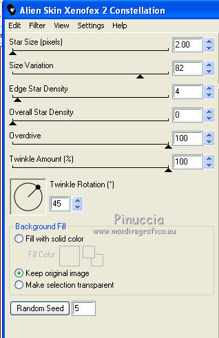 Effetti>Plugins>Alien Skin Xenofex 2.0 - Constellation, clicca su Random Seed e ok.