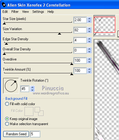 Effetti>Plugins>Alien Skin Xenofex 2.0 - Constellation, clicca su Random Seed e ok.