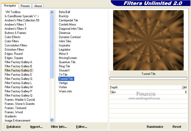 Effetti>Plugins>Filters Unlimited - Filter Factory Gallery D - Tunnel Tile.